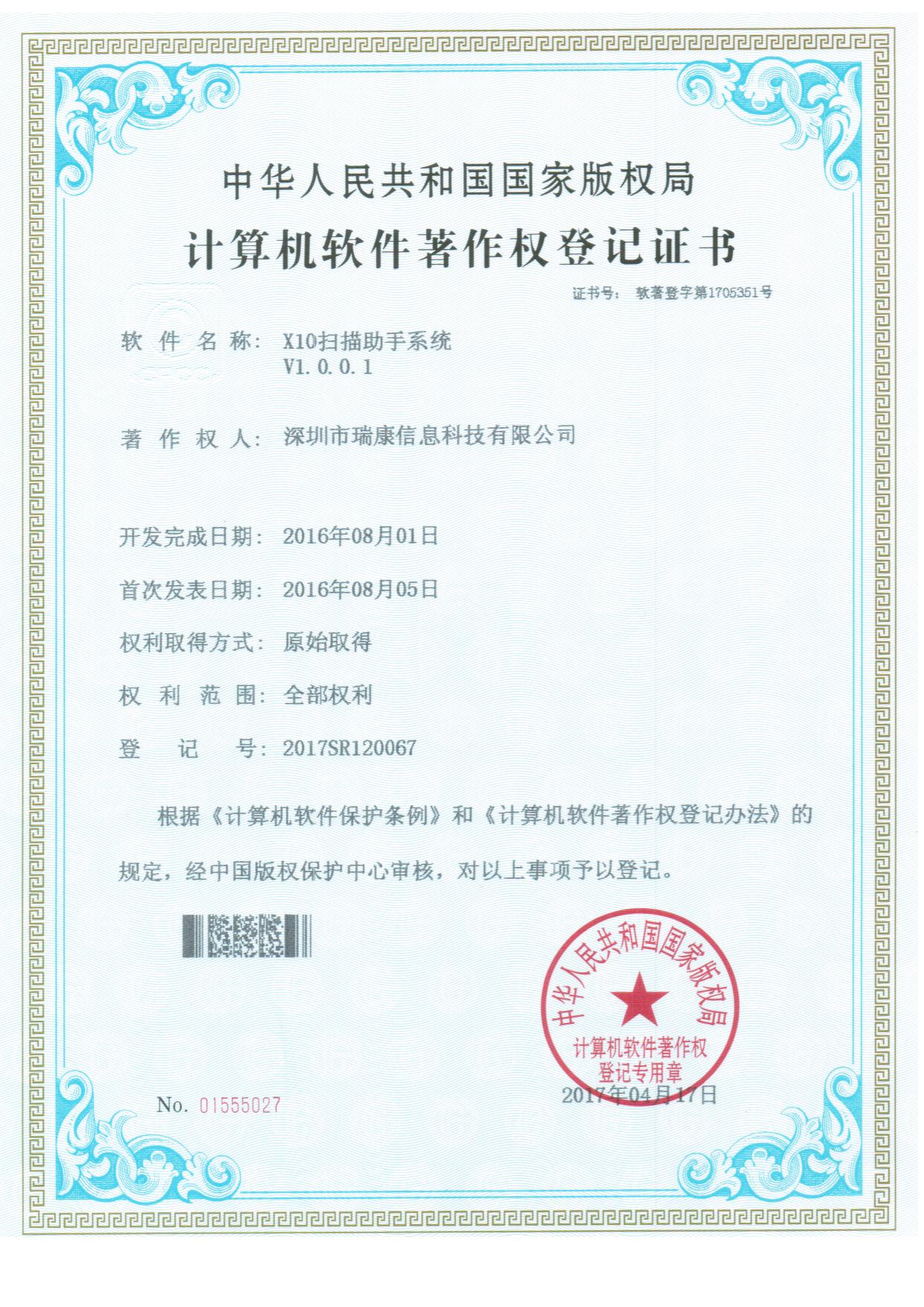 继《X10物流管理系统》和《F8快递网点财务系统》之后,瑞康科技又有4款软件著作权获批。
